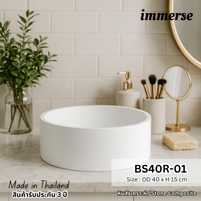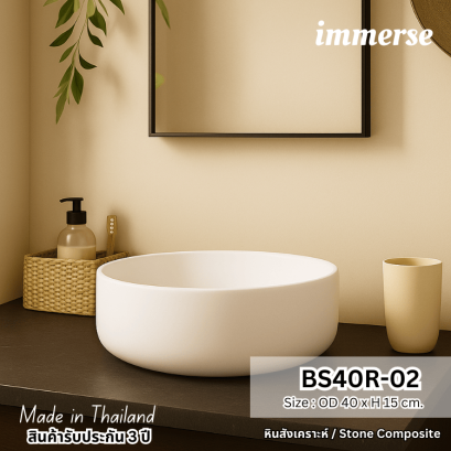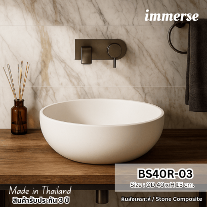 อ่างล้างหน้าหินสังเคราะห์ ขนาดเส้นผ่านศูนย์กลาง 40 ซม. สูง 15 ซม. ผลิตจากหินสังเคราะห์ Solid Surface เกรดพรีเมียม มอบความแข็งแรงและความทนทานต่อการใช้งานในระยะยาว ดีไซน์ทันสมัยเรียบหรู เหมาะกับห้องน้ำทุกสไตล์ ทั้งบ้าน คอนโดมิเนียม และรีสอร์ท ใช้งานได้ทั้งเป็นอ่างล้างหน้าและอ่างล้างมือในหนึ่งเดียว ผิววัสดุเรียบเนียน ทำความสะอาดง่าย ลดปัญหาคราบฝังลึกเหมือนหินธรรมชาติ ด้วยขนาดกะทัดรัดจึงช่วยจัดสรรพื้นที่อย่างลงตัว เหมาะสำหรับผู้ที่ต้องการผสมผสานความสวยงามและความคงทน อ่างล้างหน้าหินสังเคราะห์รุ่นนี้คือคำตอบที่ช่วยเพิ่มความหรูหราและมูลค่าให้ทุกโครงการ
