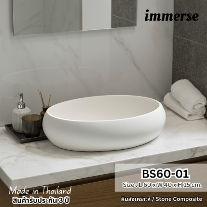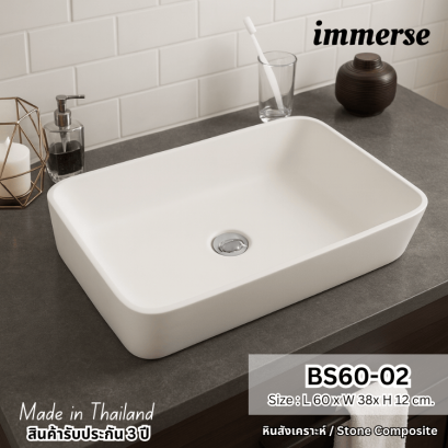 อ่างล้างหน้าหินสังเคราะห์ ขนาด ยาว 60 cm. กว้าง 38 cm. สูง 12 cm. ผลิตจาก Solid Surface เกรดพรีเมียม แข็งแรง ทนทาน ดีไซน์ทันสมัยแบบลอยตัว เหมาะทั้งใช้เป็นอ่างล้างหน้าและอ่างล้างมือ ตอบโจทย์การใช้งานในห้องน้ำบ้าน คอนโด หรือโรงแรมหรู ด้วยวัสดุหินสังเคราะห์คุณภาพสูง ทำความสะอาดง่าย ผิวเรียบเนียน ไม่เกิดคราบสะสม อ่างล้างหน้าหินสังเคราะห์รุ่นนี้ออกแบบในสไตล์ Minimal Luxury ช่วยเพิ่มความหรูหราให้ห้องน้ำทุกสไตล์ และสามารถสั่งทำสีหรือปรับแบบได้ตามต้องการ