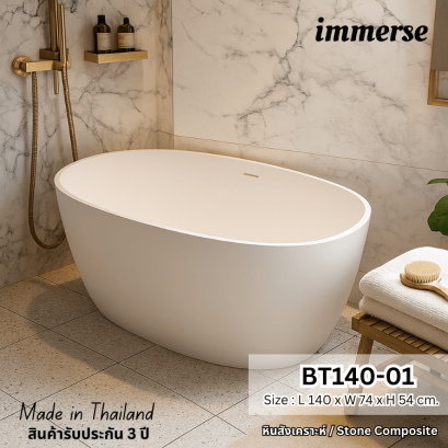 อ่างอาบน้ำหินสังเคราะห์ ทรงรี ดีไซน์ทันสมัย ผลิตจากวัสดุคุณภาพสูง แข็งแรงและทนทานต่อการใช้งานยาวนาน พื้นผิวเรียบหรู สวยงาม และดูแลรักษาง่าย ขนาดมาตรฐาน 140×74×54 cm. เหมาะสำหรับการติดตั้งในห้องน้ำสไตล์โมเดิร์นหรือหรูหรา น้ำหนักเบากว่าอ่างหินจริง ทำให้เคลื่อนย้ายและติดตั้งได้สะดวก อ่างอาบน้ำหินสังเคราะห์รุ่นนี้ถูกออกแบบมาเพื่อมอบความสบายและการรองรับสรีระอย่างพอดี เหมาะสำหรับผู้ที่ชื่นชอบการแช่น้ำผ่อนคลาย เติมเต็มบรรยากาศเสมือนสปาภายในบ้าน ช่วยยกระดับไลฟ์สไตล์และเพิ่มความโดดเด่นให้ห้องน้ำอย่างมีระดับ Solid Surface Oval Bathtub – Modern Design, Premium Comfort This oval-shaped solid surface bathtub features a modern design crafted from high-quality materials, ensuring strength, durability, and long-lasting use. The surface is sleek, elegant, and easy to maintain, adding timeless beauty to any space. With its standard dimensions of 140 × 74 × 54 cm, this bathtub is perfect for both modern and luxurious bathroom interiors. Lighter than natural stone tubs, it is easier to transport and install, making it a practical yet stylish choice. The ergonomic design is tailored to provide optimal comfort and body support, creating the perfect setting for those who enjoy soaking and unwinding in total relaxation. Transform your daily routine into a spa-like experience at home, elevating your lifestyle while adding sophistication and distinction to your bathroom.