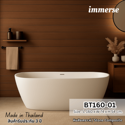 อ่างอาบน้ำหินสังเคราะห์ ดีไซน์หรูหรา ขนาดใหญ่พิเศษ ยาว 160 cm. กว้าง 74 cm. สูง 54 cm. ผลิตจากวัสดุคุณภาพสูง แข็งแรง ทนทาน และมีอายุการใช้งานยาวนาน พื้นผิวเรียบเนียนสวย ดูแลรักษาง่ายและทำความสะอาดสะดวก อ่างอาบน้ำหินสังเคราะห์รุ่นนี้ออกแบบมาเพื่อตอบโจทย์การพักผ่อนอย่างแท้จริง เหมาะสำหรับผู้ที่ชื่นชอบการนอนแช่น้ำผ่อนคลาย เติมเต็มบรรยากาศเสมือนสปาภายในบ้าน ไม่ว่าจะติดตั้งในห้องน้ำสไตล์โมเดิร์น มินิมอล หรือหรูหรา ก็ช่วยยกระดับความโดดเด่นและทำให้ห้องน้ำของคุณสมบูรณ์แบบมากยิ่งขึ้น Solid Surface Luxury Bathtub – Extra-Large Design This luxurious solid surface bathtub features an extra-large design, measuring 160 × 74 × 54 cm, and is crafted from high-quality materials for outstanding strength, durability, and long-lasting performance. Its smooth, refined surface enhances the sense of elegance while remaining easy to clean and maintain. Designed to deliver true relaxation, this model is perfect for those who love to indulge in long, soothing soaks. It transforms any bathroom into a spa-like sanctuary at home, bringing comfort and sophistication together. Whether installed in a modern, minimal, or luxurious bathroom, this solid surface bathtub elevates the ambiance, adding distinction and completing your space with timeless elegance.