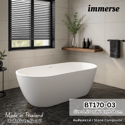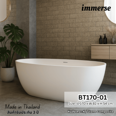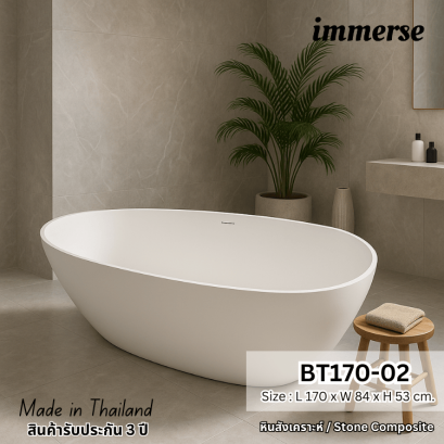 อ่างอาบน้ำหินสังเคราะห์ ทรงรี ขนาดใหญ่ ยาว 170 cm. กว้าง 76 cm. สูง 54 cm. ดีไซน์เรียบหรู ทันสมัย ผลิตจากวัสดุคุณภาพสูง แข็งแรงและทนทานต่อการใช้งานยาวนาน พื้นผิวเนียนสวย ทำความสะอาดง่าย ดูแลรักษาสะดวก เหมาะสำหรับการตกแต่งห้องน้ำสไตล์โมเดิร์นหรือหรูหรา อ่างอาบน้ำหินสังเคราะห์รุ่นนี้มีรูปทรงรีที่ช่วยรองรับสรีระได้อย่างพอดี ทำให้การนอนแช่น้ำรู้สึกสบายและผ่อนคลายเหมือนอยู่ในสปาส่วนตัว เหมาะทั้งในบ้านพัก คอนโด หรือรีสอร์ท ติดตั้งง่าย และเพิ่มคุณค่าให้ห้องน้ำของคุณดูโดดเด่น Solid Surface Oval Bathtub – Large Modern Luxury This large oval solid surface bathtub, measuring 170 × 76 × 54 cm, features a sleek, contemporary design crafted from high-quality materials for superior strength, durability, and long-lasting use. The smooth, refined surface is easy to clean and maintain, combining practicality with elegance. Its oval shape is ergonomically designed to provide excellent body support, ensuring a comfortable and deeply relaxing soaking experience — just like having a private spa at home. Perfect for modern or luxurious bathrooms, this bathtub is ideal for residences, condominiums, or resorts. Lightweight and easy to install, it enhances both the beauty and value of your bathroom, making the space stand out with distinction.