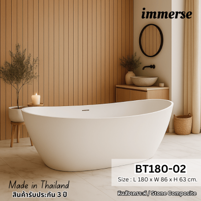 อ่างอาบน้ำหินสังเคราะห์ ทรงรี ขนาดใหญ่ ยาว 180 cm. กว้าง 86 cm. สูง 63 cm. ดีไซน์โค้งมนเรียบหรู ผลิตจากวัสดุคุณภาพสูง แข็งแรง ทนทาน และใช้งานได้ยาวนาน พื้นผิวเนียนสวย ทำความสะอาดง่าย ดูแลรักษาสะดวก อ่างอาบน้ำหินสังเคราะห์รุ่นนี้ถูกออกแบบมาเพื่อรองรับสรีระได้อย่างลงตัว เหมาะสำหรับการนอนแช่น้ำผ่อนคลาย เติมเต็มบรรยากาศห้องน้ำให้หรูหราและทันสมัย เสมือนมีสปาส่วนตัวในบ้าน ไม่ว่าจะใช้ในบ้านพัก คอนโด หรือรีสอร์ท ก็ช่วยเพิ่มความโดดเด่นให้กับทุกพื้นที่อย่างสมบูรณ์แบบ Solid Surface Oval Bathtub – Large Contemporary Design This large oval solid surface bathtub, measuring 180 × 86 × 63 cm, features a sleek, gracefully curved design crafted from high-quality materials for exceptional strength, durability, and long-lasting use. The smooth, elegant surface is easy to clean and maintain, while the carefully designed proportions provide excellent body support for a truly relaxing soak. Perfect for creating a modern, luxurious bathroom atmosphere, this bathtub transforms your space into a private spa at home. Whether installed in a residence, condominium, or resort, it enhances the ambiance with sophistication and makes every bathroom stand out with timeless appeal.